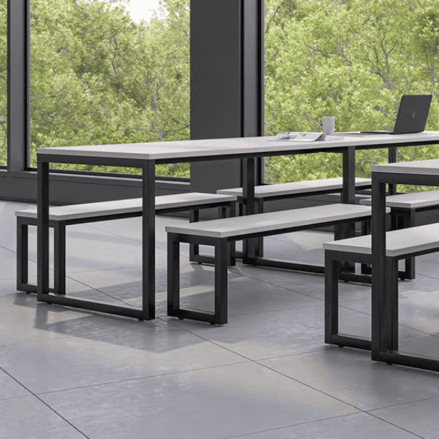 | Bench Tables and Seats With Steel Hoop Legs |