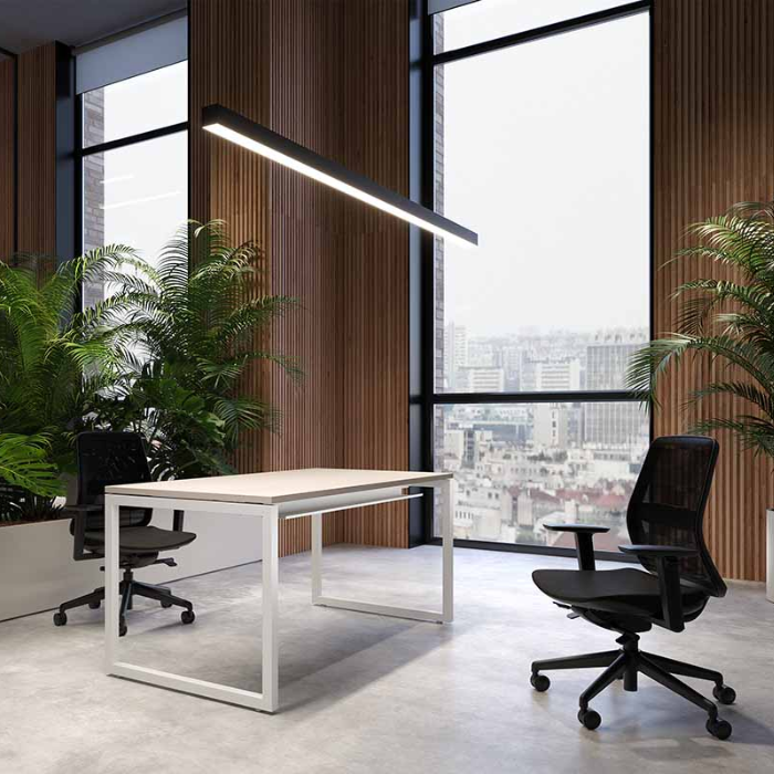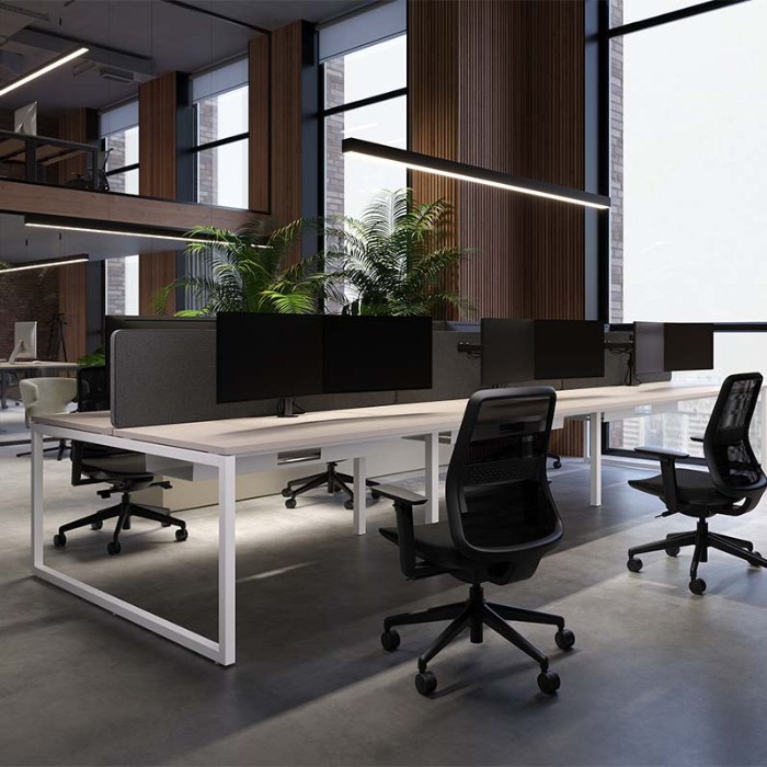 Lavoro Lanto Bench Desk has been elegantly designed with a ring-shaped frame and a floating desktop to partner. It’s an attractive furniture piece for a contemporary workplace. Available for free next-day delivery from stock as a single desk, dual desk or bench desking options. Available in 4 frame colours and 20 desktop decors.