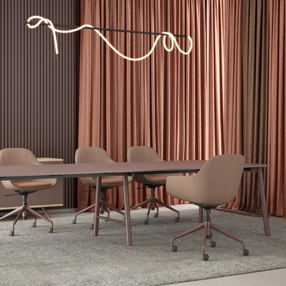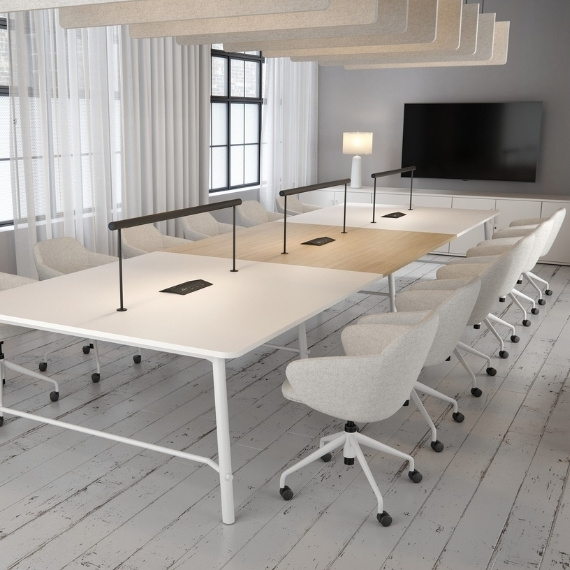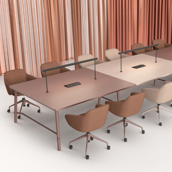 The collection’s distinctive rounded steel legs, available in 14 premium colour finishes, allow for personalisation and cohesion across any environment, from collaborative studios to executive suites. A cross-bracing end frame not only enhances the visual appeal but ensures exceptional stability and durability for daily use.