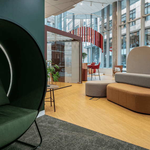View all the BT Office Furniture range at Booth St in Manchester. Connection Seating and Flokk produce collaborative furniture for the office that helps to create a more laid back style of office. Breakout chairs like Dixi and Mae are real statement pieces. Hygge high back lounge chair on the rocking base provides a more relaxed option whilst ‘Rooms’ creates a truly unique space within the office. Connection Seating also produce two ranges of platform and stage seating for informal presentation areas. The showroom is full of design led products that would improve any office environment.